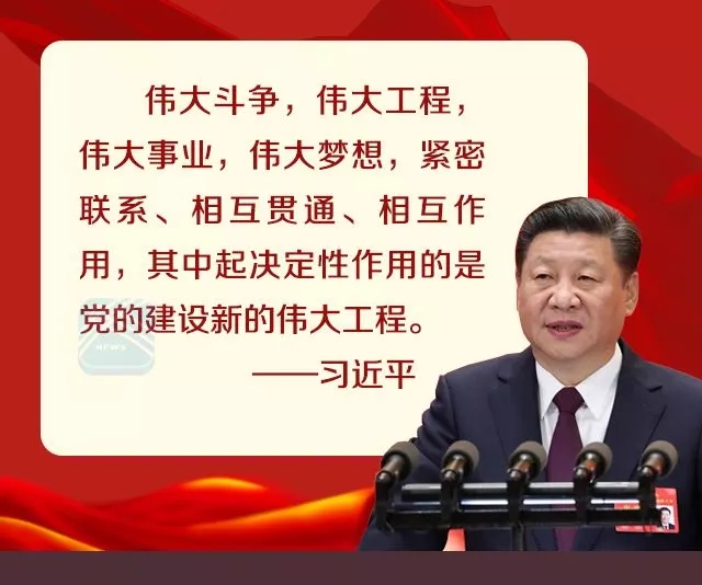 偉大斗爭(zhēng),偉大工程,偉大事業(yè),偉大夢(mèng)想,緊密聯(lián)系、相互貫通、相互作用,其中起決定性作用的是黨的建設(shè)新的偉大工程。