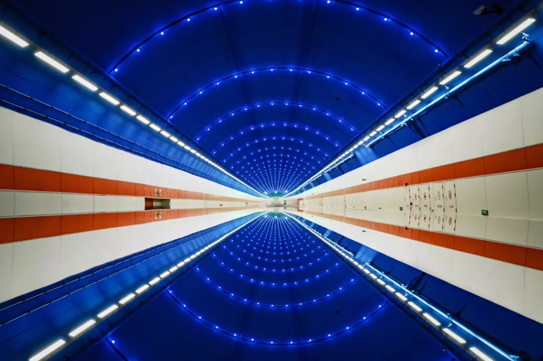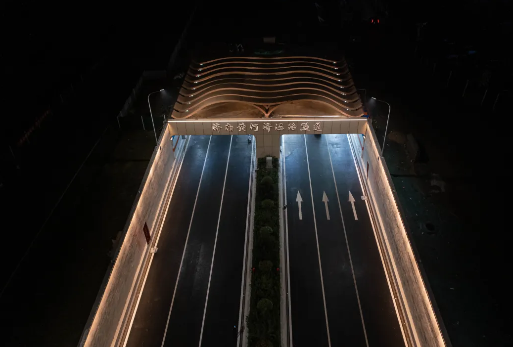 濟南黃河濟濼路隧道設(shè)計方案以黃河文化根脈為基,黃河之“光”為“場”,融合黃河歷史、文化、自然、藝術(shù)等表現(xiàn)黃河兩岸是我家。“黃河根脈歲歲安瀾”主題設(shè)計定位為城河相融,動靜相融,蘊含“天人合一”的設(shè)計理念,讓黃河隧道藝術(shù)空間景觀和自然互為補充。設(shè)計中借黃河水紋傳統(tǒng)紋樣,將黃河文化與自然生態(tài)中的場地、色彩、光影結(jié)合,再造了黃河地形與黃河流動的自然之美,描繪了新時代黃河畫卷中詩情畫意的城市底蘊。