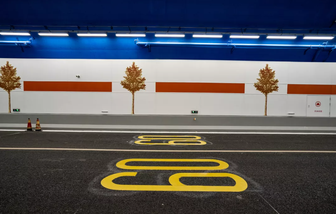 保持隧道主體工程結(jié)構(gòu)不變,通過增加裝飾,實現(xiàn)整體設(shè)計提升。隧道南北出口聲屏障以“歲歲九曲彎”和“歲歲安瀾”為設(shè)計主題,以中國傳統(tǒng)裝飾紋樣呈現(xiàn),夜晚還將呈現(xiàn)“日出黃河”的燈光效果。添加“流動”與“水紋”的造型體現(xiàn)了黃河穿越之美,在隧道內(nèi)采用3D打印貼膜工藝?yán)L制白楊樹(寓意堅韌、表達(dá)力求上進的精神),以緩解駕駛員視覺疲勞。同時以黃河星空為題,中間段頂部弧線的燈光表現(xiàn)黃河穿越之感,暖色照明設(shè)計表現(xiàn),感受黃河星空光線流動之美。