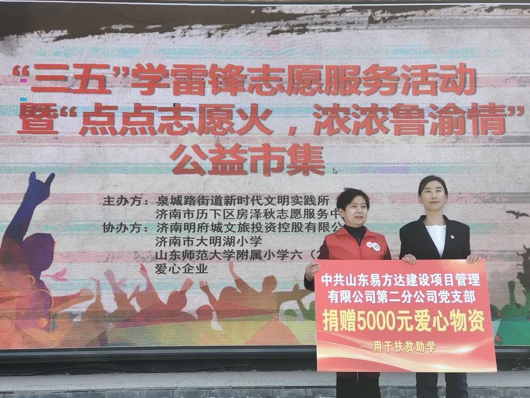 為進一步學習和弘揚雷鋒精神,大力發(fā)揚“奉獻、友愛、互助、進步”的志愿精神,積極響應拓展東西部協(xié)作工作領域,促進東西部協(xié)作,共建魯渝情。3月5日,易方達公司所屬黨支部作為愛心企業(yè)代表,參與了濟南市歷下區(qū)房澤秋志愿服務中心主辦的“點點志愿火,濃濃魯渝情”公益市集活動。